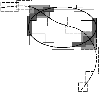For each box set, a near-optimal cutoff parameter is determined using an adaptive approximation. The runtime required for streaming is compared against usual scanning. Results on a Xeon 2.4GHz with 4GB main memory can be seen in fig__fig_benchmark. For a small number of boxes, pure scanning is still faster than streaming with optimal cutoff, which would just delegate the box sets to the scanning algorithm. As there are more and more boxes, the overhead becomes less important.