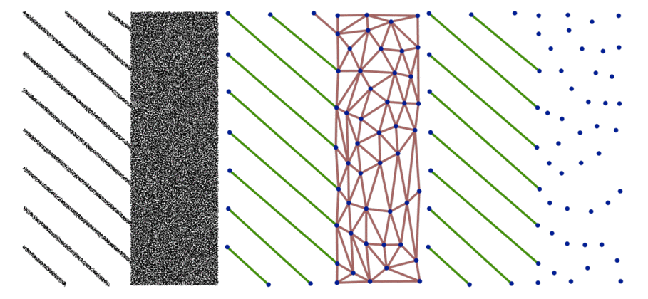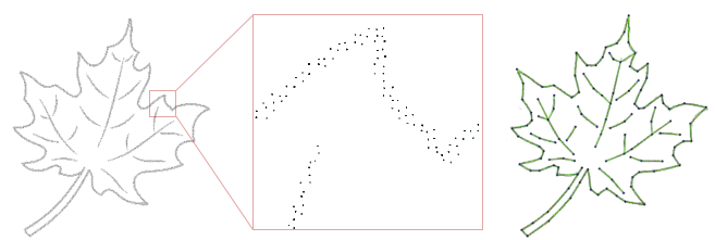 fig__Optimal_Transportation_Curve_Reconstruction_summary Left: input point set hampered by noise. Right: The corresponding reconstructed shape consisting of line segments.