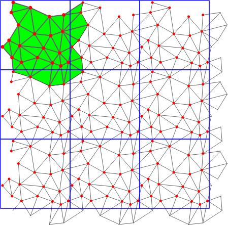 For large point sets there are two optimizations available. Firstly, there is spatial sorting that sorts the input points according to a Hilbert curve, see chapter Spatial Sorting. The second one inserts 12 appropriately chosen dummy points to avoid the use of a 9-sheeted covering in the beginning. The 12 dummy points are deleted in the end. If the point set turns out to not have a Delaunay triangulation in 1-sheeted covering, the triangulation is converted to 9-sheeted covering during the removal of the 12 dummy points. This might take even longer than computing the triangulation without using this optimization. In general, uniformly distributed random point sets of more than 1000 points have a Delaunay triangulation in 1-sheeted covering.