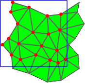 The two main classes Periodic_2_Delaunay_triangulation_2 and Periodic_2_triangulation_2 provide high-level geometric functionality and are responsible for the geometric validity. Periodic_2_Delaunay_triangulation_2 contains all the functionality that is special to Delaunay triangulations, such as point insertion and vertex removal, the side-of-circle test, finding the conflicting region of a given point, dual functions etc. Periodic_2_triangulation_2 contains all the functionality that is common to triangulations in general, such as location of a point in the triangulation [4], access functions, geometric queries like the orientation test etc.