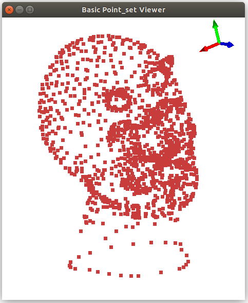 A 3D point set can be visualized by calling the CGAL::draw<PS>() function as shown in the following example. This function opens a new window showing the given point set. A call to this function is blocking, that is the program continues as soon as the user closes the window.