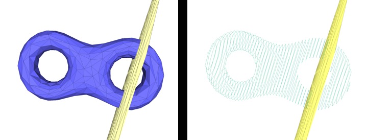 fig__SlicerFig Slicing a mesh. A triangle mesh (left) and the polylines computed by the mesh slicer by intersecting a set of parallel planes (right).