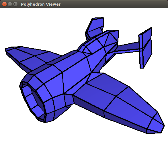 A polyhedron can be visualized by calling the CGAL::draw<POLY>() function as shown in the following example. This function opens a new window showing the given polyhedron. A call to this function is blocking, that is the program continues as soon as the user closes the window.