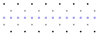 fig__chapterScaleSpaceReconstruction3figLine The black points and crosses show two different point sets. The blue boxes show both point sets at a higher scale. Note that given just the blue boxes, we cannot determine its point set at a lower scale.