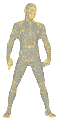 Many point sets contain point attributes such as normals or colors. Because the scale-space surface reconstruction constructs the connectivity between the original points, any point attributes that make sense for a surface can be propagated to the reconstruction. fig__chapterScaleSpaceReconstruction3figColor shows the surface reconstructed for a set of points with colors.