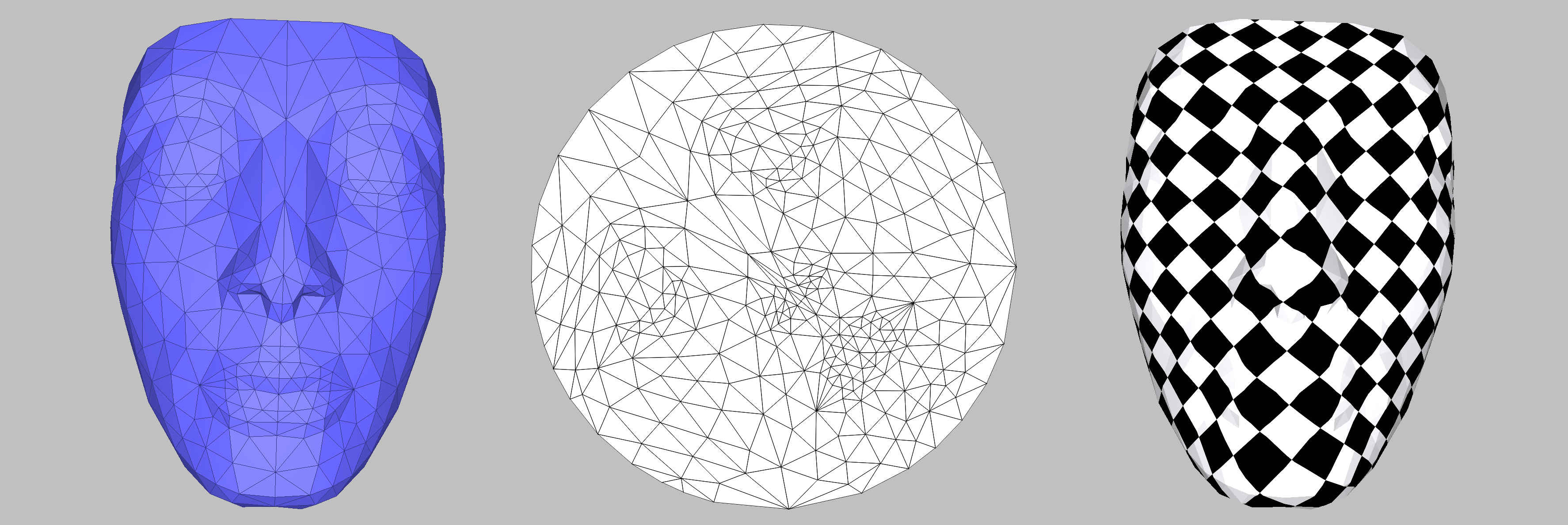 fig__Surface_mesh_parameterizationfigsimple Input (left), parameter space (middle), and textured mesh (right) corresponding to the example simple_parameterization.cpp.